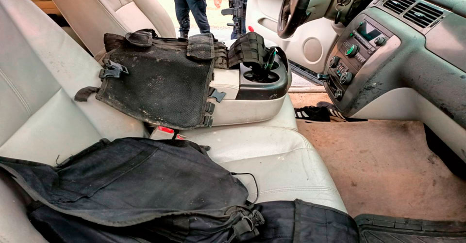 También los estatales localizaron en el interior de la unidad cartuchos, cargadores y equipo táctico, por lo que se le dio parte a la Fiscalía General de Justicia del Estado (FGJE) para que lleve a cabo la investigación correspondiente.
