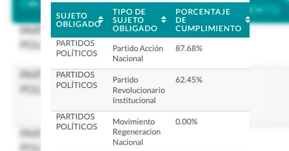 En información obtenida a través de una solicitud de información en el Itait, Morena obtuvo un cero por ciento de cumplimiento en la difusión de obligaciones por transparencia.