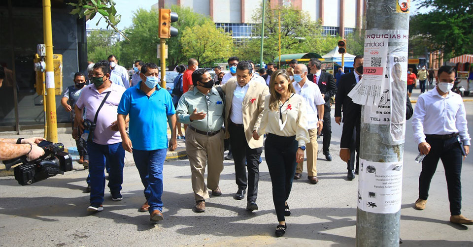 Acompañado de la presidenta del Sistema DIF Victoria, Lucía Rodríguez de Gattás, saludó y dialogó con algunos de los más de 280 propietarios de puestos fijos y semifijos y lustradores de calzado instalados en el primer cuadro de la ciudad.