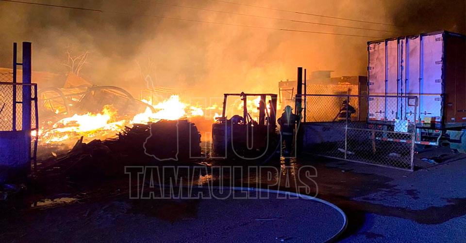 Nuevo Laredo, Tamaulipas. - Un incendio arrasó con una tarimera localizada al sur de Nuevo Laredo. Hasta ahora, las causas que originaron el siniestro se desconocen.