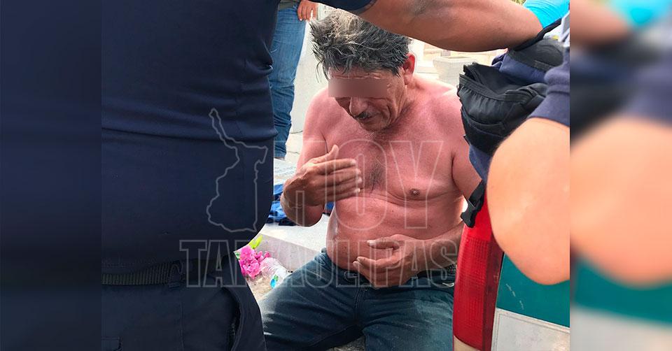 Rogelio, de 57 años, fue auxiliado por paramédicos de Protección Civil y Bomberos, quienes lo trasladaron al Hospital General, donde se rehusó a ser atendido.