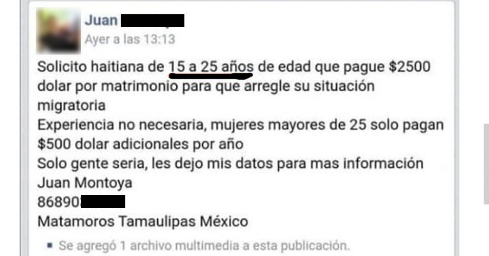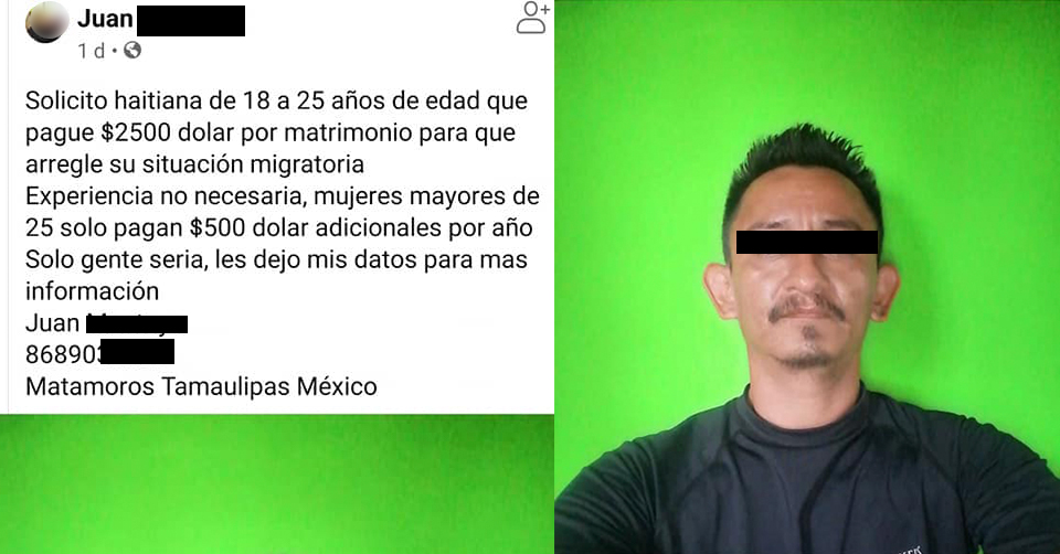 Se ofrece en Matamoros para casarse con haitianas de 18 a 25 años; solo deberán pagarle 2,500 dólares
