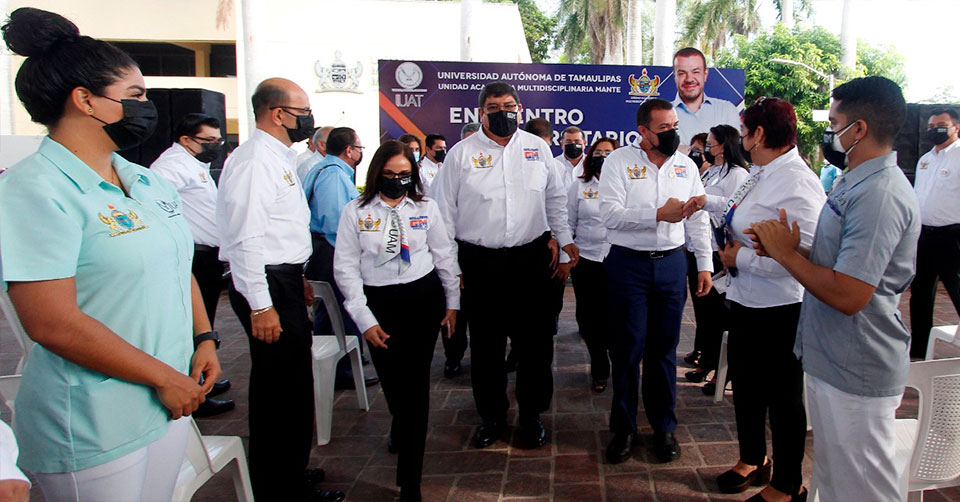 Ciudad Mante, Tamaulipas. - La comunidad académica y estudiantil de Ciudad Mante reafirmó al C. P. Guillermo Mendoza Cavazos, Rector Electo de la Universidad Autónoma de Tamaulipas (UAT), el compromiso de trabajar juntos y unidos para seguir impulsando la educación, la ciencia y la cultura por una Universidad más grande y más fuerte al servicio de la sociedad.