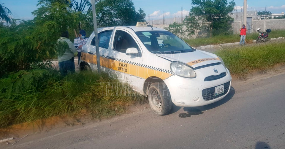 Al momento del impacto, el vehículo Nissan habilitado como taxi, del impacto, se subió a el camellón central divisorio de carriles.