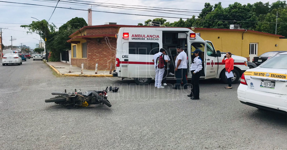 Ciudad Victoria, Tamaulipas. - Un motociclista resultó lesionado luego de ser impactado por un auto en la capital tamaulipeca.