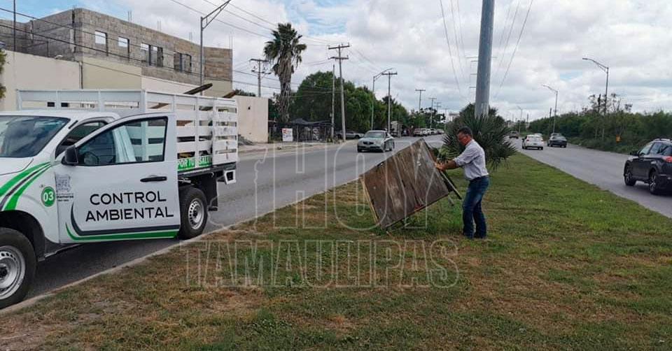 Retiran anuncios publicitarios de camellones en Matamoros