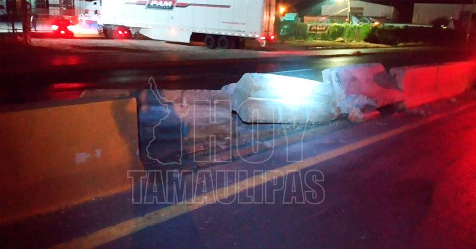 Choca tráiler contra muros en carretera de Nuevo Laredo