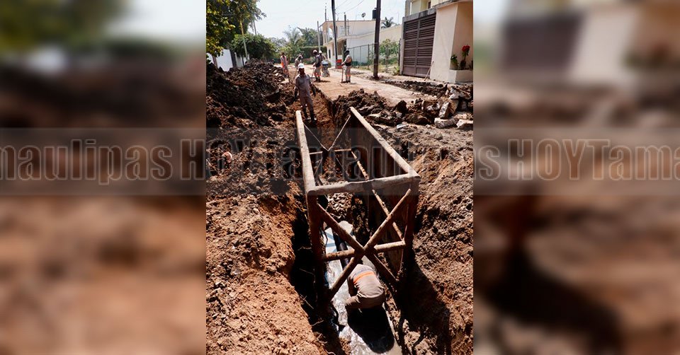 Altamira, Tamaulipas. - Haciendo realidad la cuarta transformación de Altamira y cumpliendo con la encomienda del presidente municipal Armando Martínez Manríquez, la nueva COMAPA Altamira que dirige el Ing. Omar Hernández Leines, continúa con las labores de reparación de la línea de drenaje a lo largo de 60 metros lineales en la calle Naranjos, entre calle Reynosa y perimetral Madero.