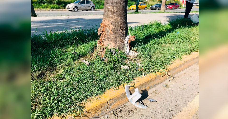 Ciudad Victoria, Tamaulipas. - Un conductor resultó ileso luego de estrellar su vehículo contra una palmera en la Avenida Carlos Adrián Avilés y cruce con la José Sulaimán Chagnón, argumentando que le fallaron los frenos.