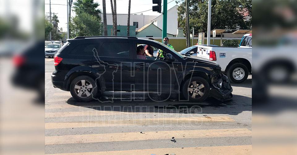 Nuevo Laredo, Tamaulipas. — Al no respetar la luz roja del semáforo, un militar de la Secretaría de la Defensa Nacional (Sedena) provocó un accidente en la Avenida César López de Lara, una de las vías más transitadas de Nuevo Laredo, dejando como saldo cuantiosos daños materiales y a una mujer con leves golpes.
