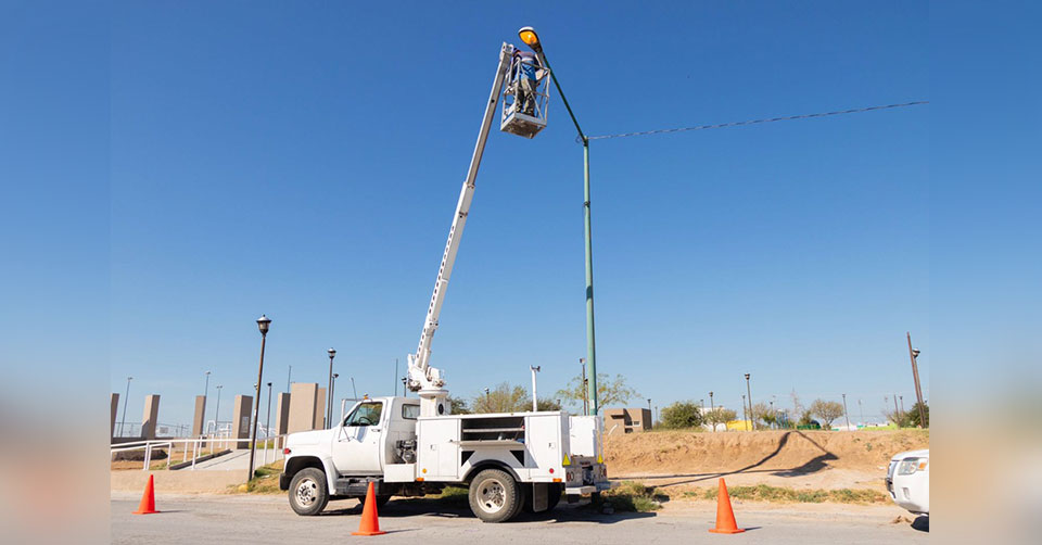 Nuevo Laredo, Tamaulipas. - El Gobierno Municipal, a través de la Secretaría de Servicios Públicos Primarios, ha reparado desde el primer día de la administración a la fecha, alrededor de 482 mil 896 metros cuadrados, equivalente a cerca de 2 mil 518 luminarias rehabilitadas en diversos puntos de la ciudad, como parte del Plan de Rescate Municipal.