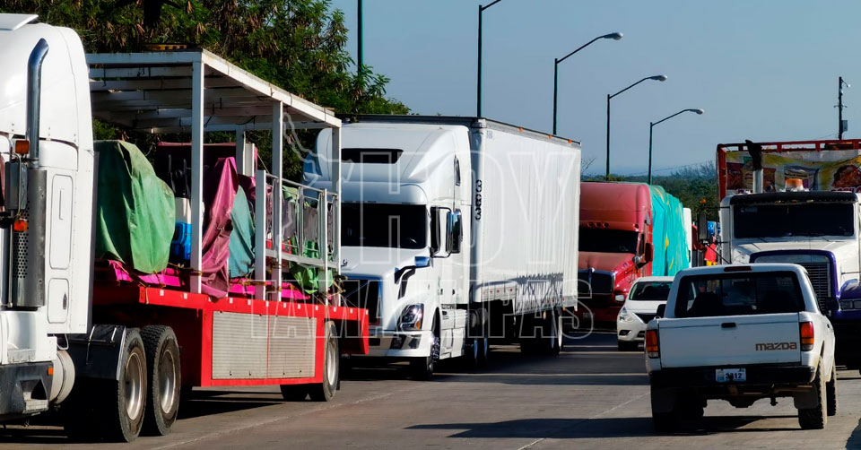 Más de una docena de tráileres cargados con los juegos mecánicos que se instalarán hacen fila a un costado de una de las entradas al recinto Ferial, para poder ingresar a las instalaciones, hasta el momento solo uno ingresó el día de ayer.