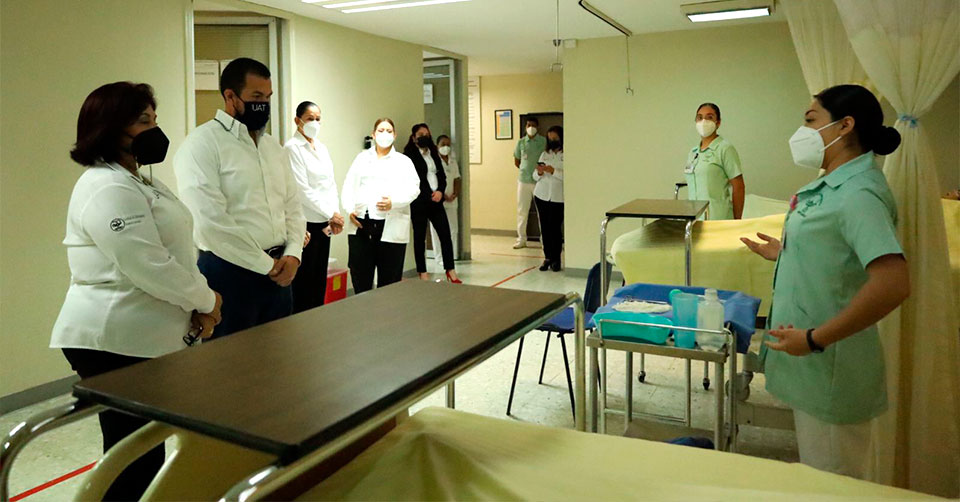Como parte de su visita a la Facultad de Enfermería de Nuevo Laredo, el contador público Guillermo Mendoza Cavazos hizo un recorrido de supervisión por las instalaciones para la práctica y enseñanza clínica.