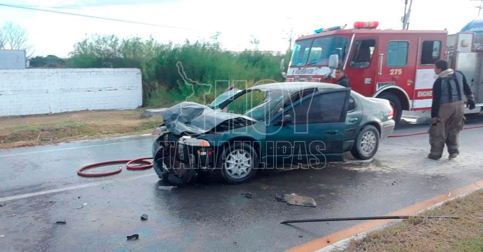 Matamoros, Tamaulipas. - Un fuerte choque entre un auto y un tráiler en la carretera Matamoros-Reynosa, dejó un saldo de dos personas lesionadas de gravedad.