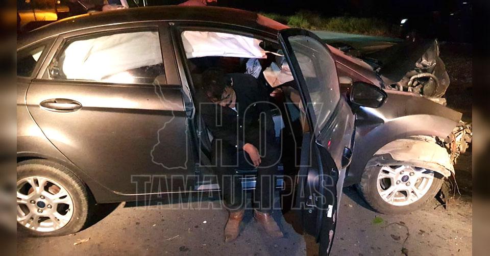 Los hechos se registraron luego de que el vehículo Ford Fiesta circulara de Sur a Norte sobre el libramiento Naciones Unidas y a la altura del fraccionamiento Todos por Tamaulipas se estrellara contra una luminaria.