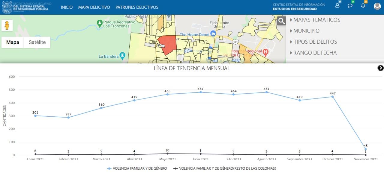 El resto de las colonias tienen menos de 40 denuncias por los delitos antes mencionados, observando un claro repunte de este tipo de violencia en los domicilios durante la pandemia de la Covid-19.