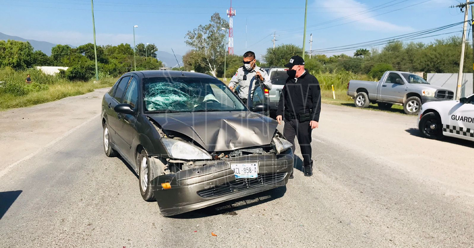 Ciudad Victoria, Tamaulipas. - Una conductora con tres meses de gestación resultó lesionada esta mañana luego de protagonizar un fuerte accidente vial, en el kilómetro 225 de la carretera antigua a El Mante, a la altura del Fraccionamiento Canteras.