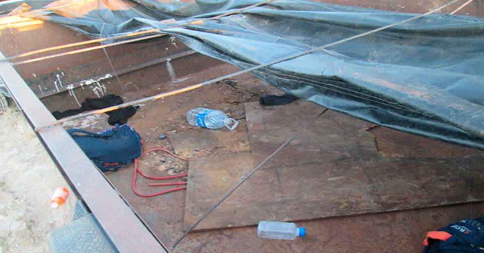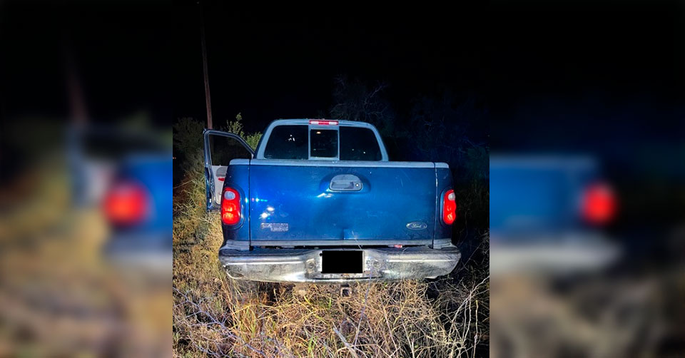 Ayer, un agente destacamentado en Kingsville, observó una camioneta Chevrolet que arrastraba un remolque por una carretera de caliche al sur del puesto de control de la Patrulla Fronteriza denominado Javier Vega Jr. Mientras que el oficial pasaba junto al vehículo, notó que había varias personas en la cabina del camión. Sin que se le indicara, el vehículo se detuvo a un lado de la carretera y se vio a varios sujetos huyendo hacia la maleza.