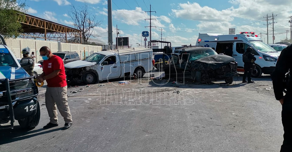 Reynosa, Tamaulipas. - Un fuerte choque entre dos camionetas dejó como saldo una mujer sin vida y tres personas más lesionadas, entre ellos una menor de edad esta tarde, en la carretera Reynosa-San Fernando, a la altura de la colonia México.