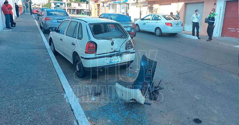 Tampico, Tamaulipas. - Dos jóvenes resultaron con lesiones luego de impactarse a bordo de un Jetta en contra de una camioneta y varios vehículos estacionados.