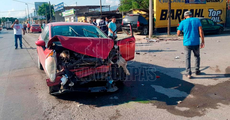 Ciudad Victoria, Tamaulipas. - El conductor de una camioneta Tahoe resultó ileso luego de que al omitir un alto chocó un carro, tumbó un poste y se metió a una vulcanizadora en Ciudad Victoria.