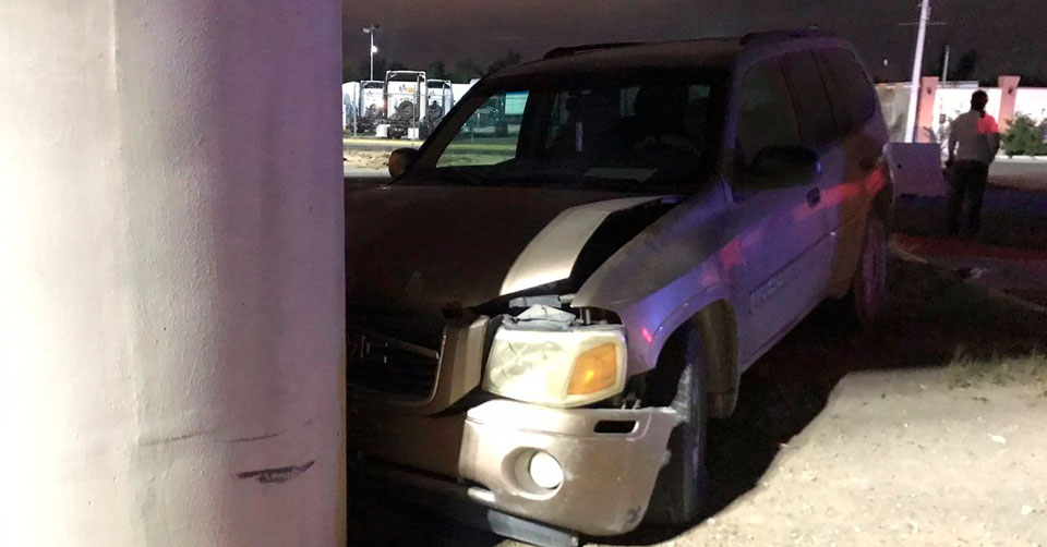 Nuevo Laredo, Tamaulipas. — Al asegurar que un vehículo le dio un cerrón, una mujer avanzó descontrolada por casi 50 metros hasta que terminó estrellándose contra uno de los soportes de concreto del puente Transformación en Nuevo Laredo.