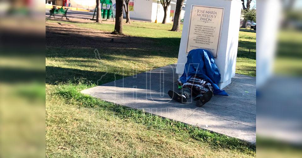 La víctima, de momento no identificada, quedó sentada frente al busto a José María Morelos y Pavón, en la Plaza Insurgentes, ubicada frente al centro hospitalario, según informes.