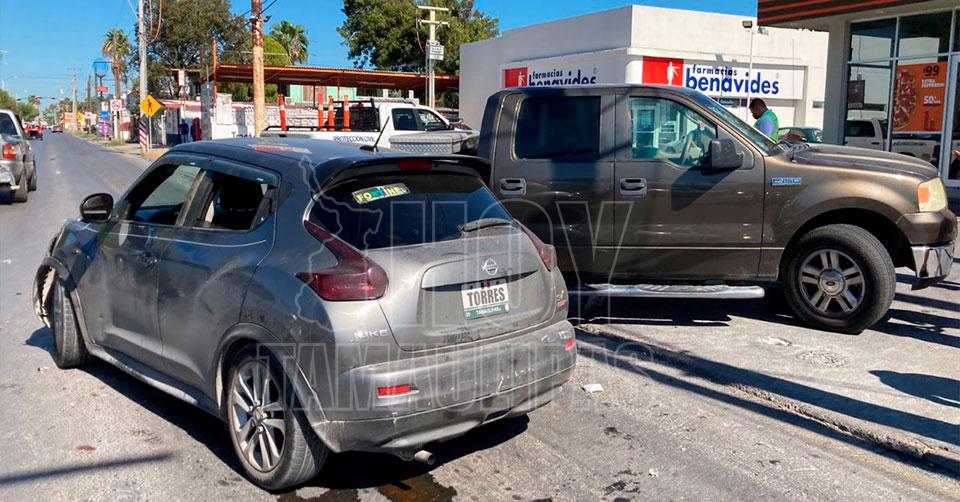 El percance se registró hoy por la tarde en el crucero con la calle Perú, en la colonia Juárez de Nuevo Laredo, siendo este provocado por Ninfa, de 44 años.