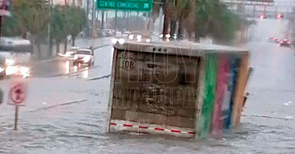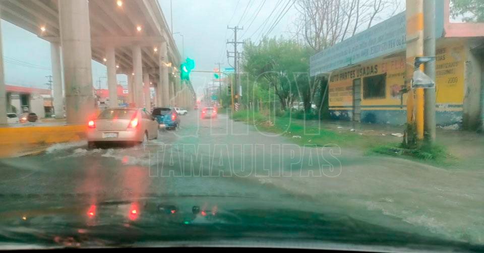 Reynosa, Tamaulipas. - El nuevo frente frío que arribó a Reynosa llegó con fuerte lluvia en algunos sectores de la ciudad, dejando encharcamientos moderados en algunas colonias