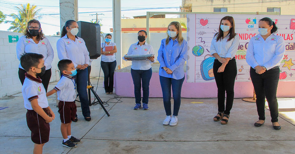 Ciudad Madero, Tamaulipas. - Al dar inicio las clases de manera presencial, la presidenta del Sistema DIF Madero, Sra. Ana Cristina Organista de Oseguera, encabezó el regreso de los alumnos a los Centros de Asistencia Infantil (CAI) y les dio la bienvenida, adaptándose a las nuevas medidas por la pandemia de Covid-19.