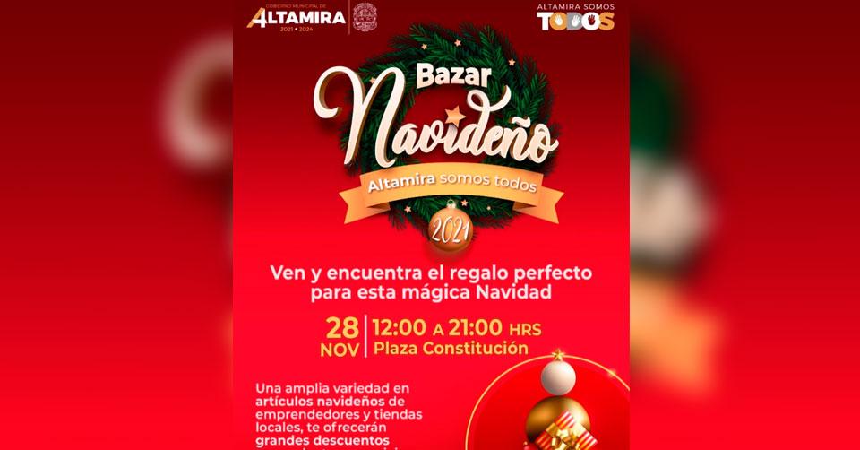 "Trabajado por Desarrollo Económico, el regidor de esta comisión y Canaco Altamira, tenemos de todo, hay gente que va a ofrecer cenas navideñas, en gastronomía estará nutrido, pero también tendremos venta de pantalones y accesorios para el pino, en general un buen bazar navideño", citó.