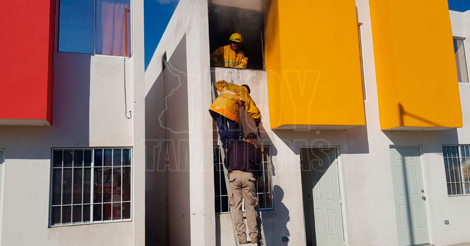 Ciudad Victoria, Tamaulipas. - Un incendio en la segunda planta de una casa estuvo a punto de cobrar la vida de dos niñas, ya que estuvieron a punto de quedarse encerradas en la vivienda ubicada en el Fraccionamiento Rincón de las Montañas, sobre la salida a la Marina.