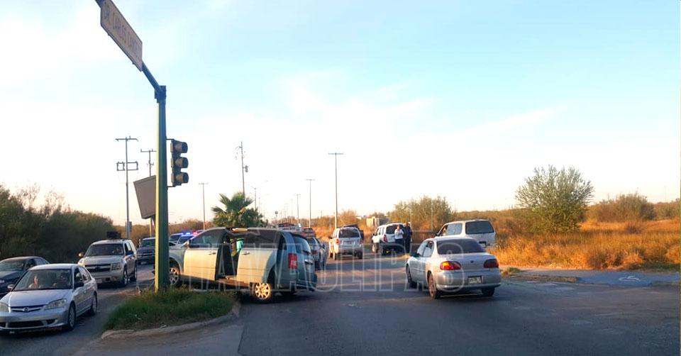 Este accidente vehicular se registró en el crucero del Segundo Anillo Periférico y el Bulevar Carlos Canseco, en el sector poniente de Nuevo Laredo.