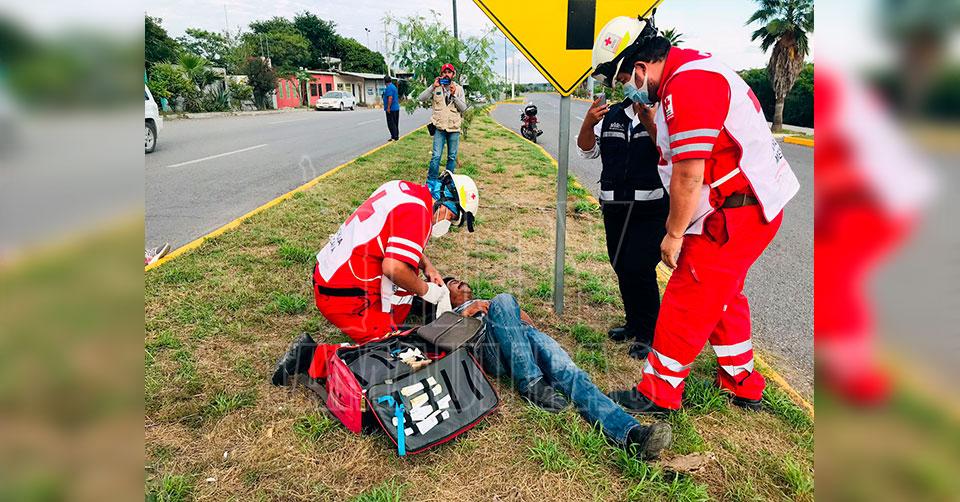 Los hechos ocurrieron cuando el hombre de aproximadamente 40 años de edad viajaba sobre el Bulevar Praxedis Balboa a bordo de su motocicleta Italika FT 125, y antes de llegar a la altura de la Avenida Tenochtitlan de la colonia Azteca derrapó y resultó lesionado.