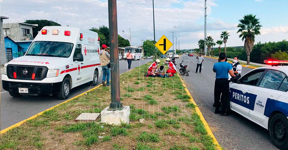 Ciudad Victoria, Tamaulipas.- Una persona resultó lesionada cuando al viajar a bordo de una motocicleta derrapó en Ciudad Victoria.