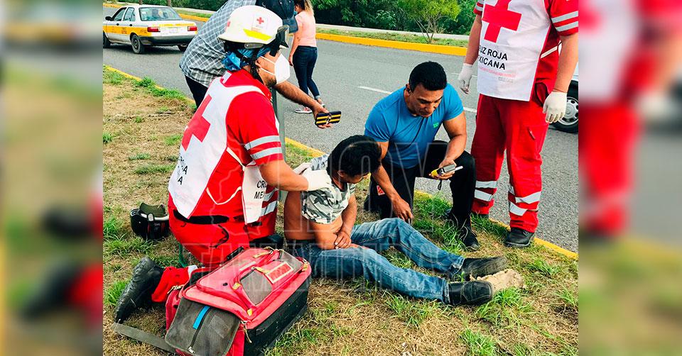 Al lugar de los hechos arribó una ambulancia de la Cruz Roja Mexicana para la valoración del hombre, y determinaron llevarlo al Hospital General por una probable fractura de hombro.