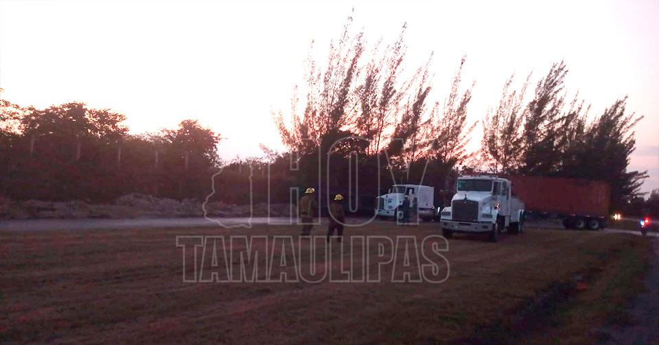 Bomberos de Altamira recibieron el reporte de presunta volcadura, sin embargo, al llegar, encontraron que sólo se trataba del remolque.