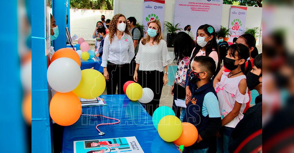 Tampico, Tamaulipas. - En el marco del 32 Aniversario de la ratificación de la Convención sobre los Derechos de las Niñas, Niños y Adolescentes; y con el objetivo de promover y difundir los derechos infantiles, la presidenta del Sistema DIF Tampico, Aída Féres de Nader encabezó la Feria de los Derechos de las Niñas, Niños y Adolescentes, efectuada en el Centro de Fortalecimiento Familiar.
