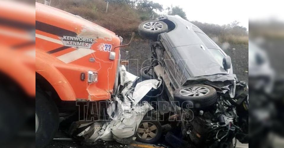 Jilotepec, Edomex. - Tráiler choca contra dos camionetas, dejando una de ellas prensada, en la autopista México – Querétaro, kilómetro 80 al 79 en Dirección a la Cd. de México, a la altura del poblado de Santa Ana Atzcapotzaltongo.