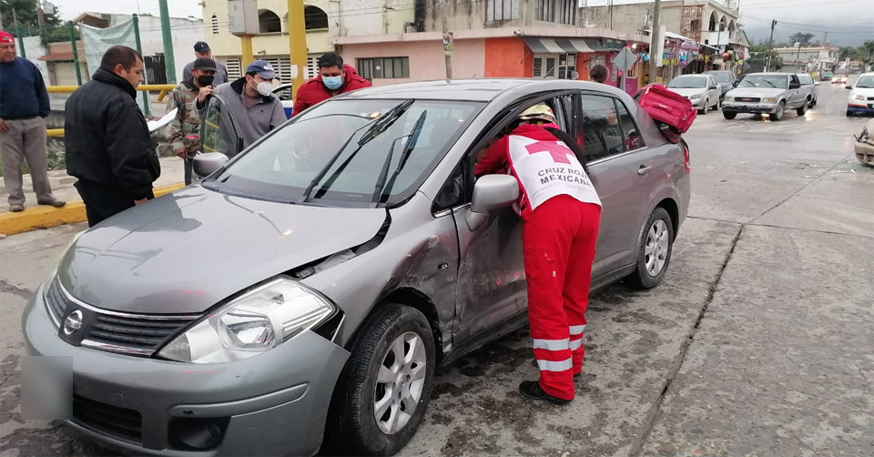 Técnicos en urgencias médicas de la Cruz Roja brindaron la atención pre hospitalaria a una pareja que viajaba a bordo de un automóvil Nissan Tiida, y la mujer tuvo que ser trasladada a un hospital, mientras que el hombre solo fue valorado en el lugar.