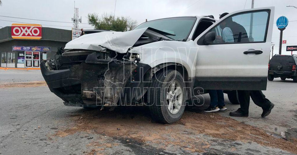 Matamoros, Tamaulipas. - Un fuerte choque entre dos camionetas se registró la mañana de este domingo en Matamoros, mismo que dejó un saldo de una persona lesionada.