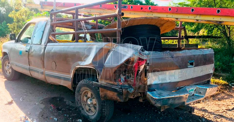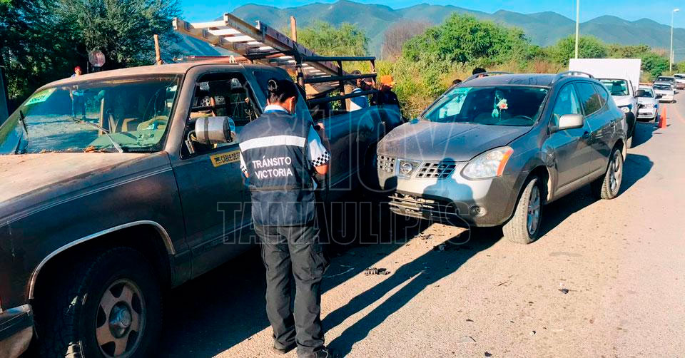 Ciudad Victoria, Tamaulipas. - Varios trabajadores resultaron lesionados esta mañana luego de ser chocada la camioneta en la que viajaban y que estaba averiada sobre la carretera interejidal, a la entrada al centro recreativo Los Troncones en Ciudad Victoria.