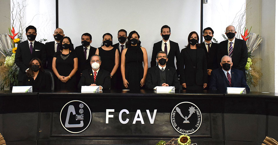 Durante la ceremonia realizada de manera presencial en el auditorio de la FCAV y transmitida mediante redes sociales, el Rector Suárez Fernández felicitó a los graduados por concluir un posgrado que les ha dado una formación especializada para la investigación y el desarrollo de proyectos innovadores.