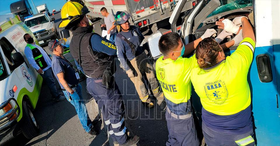 Víctor, quien conducía una camioneta Ford Express, quedó atrapado en el volante, luego de ser chocado por alcance por el chofer de un tráiler y arrastrado hacia la caja de una segunda unidad pesada.