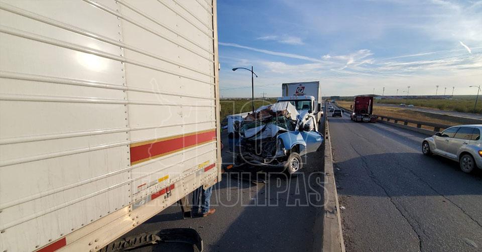 Nuevo Laredo, Tamaulipas.- Dos personas lesionadas, una de ellas atrapada en el volante y daños cuantiosos, fue el saldo de un accidente ocurrido en la parte media del puente vehicular del Segundo Anillo Periférico y la Carretera a Anáhuac, en Nuevo Laredo.