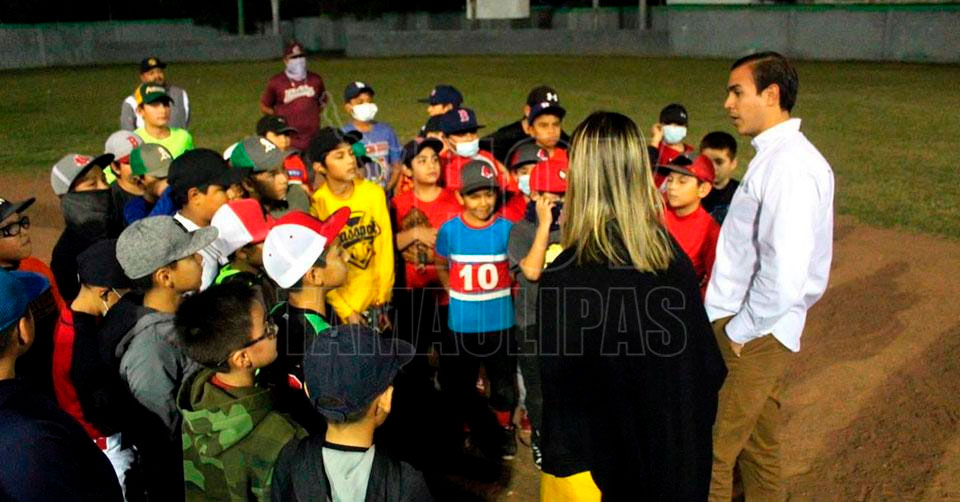Ciudad Victoria, Tamaulipas. - La liga de béisbol infantil Santa María de Aguayo, recibió de parte del Instituto del Deporte (INDE) una serie de materiales para equipamiento y remozamiento de su parque.