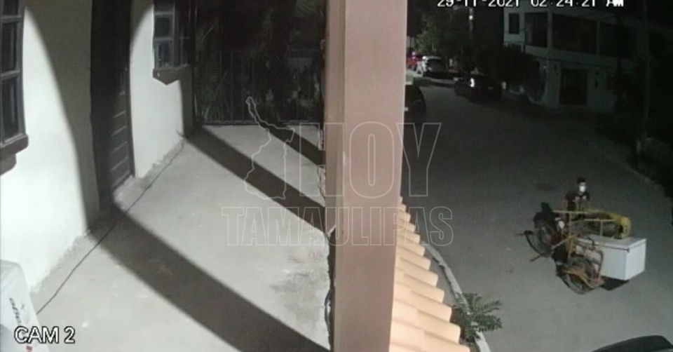 Denunciaron a través de diversos videos de las cámaras de vigilancia de la zona, a un sujeto joven, corpulento, de más de 25 años de edad, donde claramente se ve cuando se lleva el asador, mientras en el triciclo ya tenía el refrigerador y otras cosas.