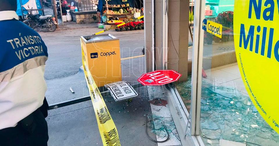 Se le "entrincan las patas" y se estrella contra Coppel en el centro de Victoria