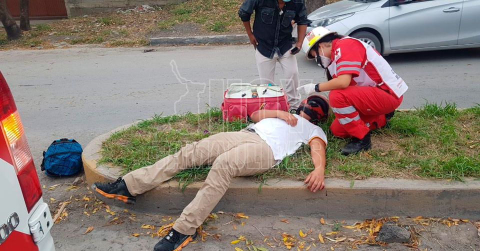 A la altura del fraccionamiento Las Palomas un vehículo Tida, que se desplazaba sobre los carriles laterales de poniente-oriente trató de retornar cerrándole el paso al motociclista proyectándolo al área de rodamiento.