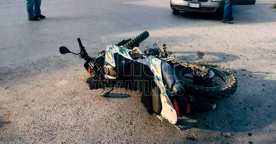 Ciudad Victoria, Tamaulipas. - Un motociclista resultó lesionado esta mañana, luego de que el conductor de un vehículo presuntamente le cerró el paso y lo derribó en Ciudad Victoria.
